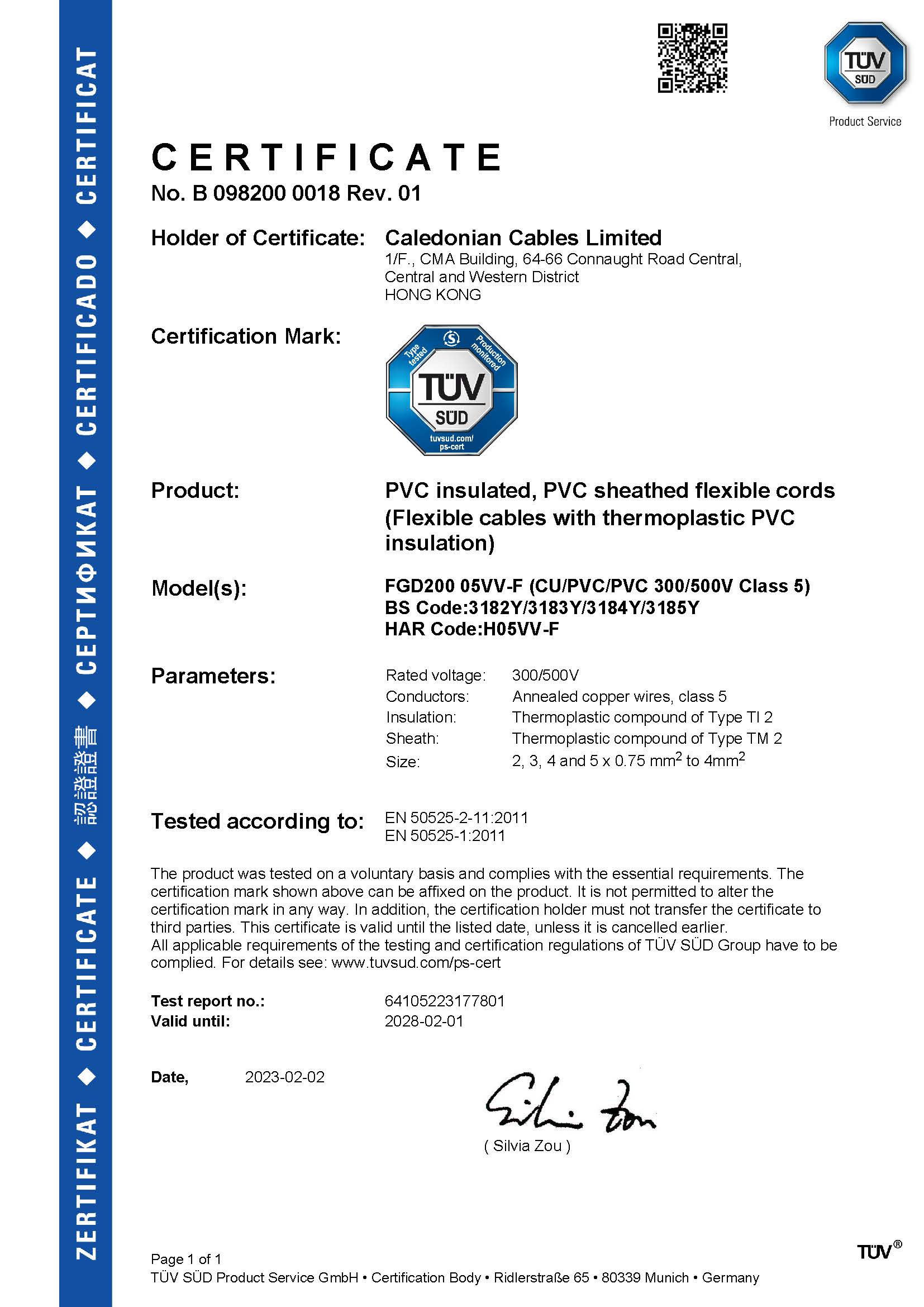 TUV MARK-EN 50525-2-11 H05VV-F Certification