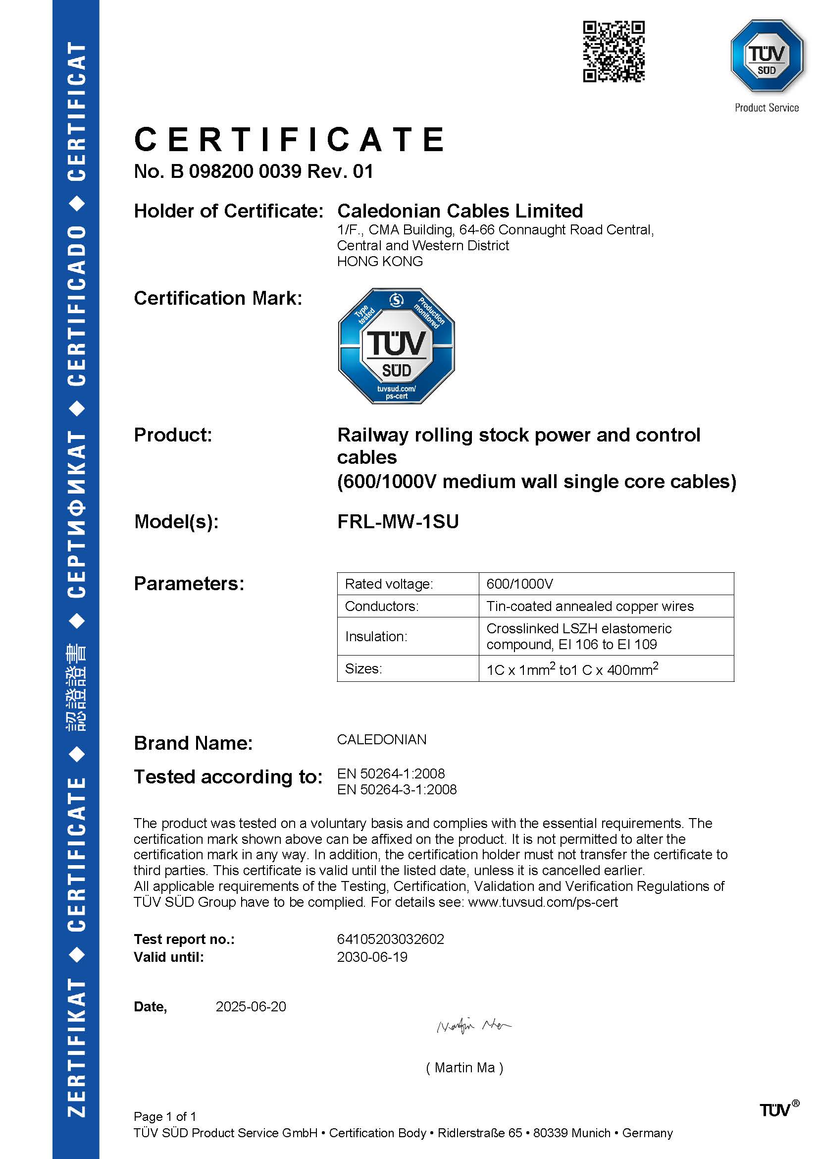 TUV MARK-EN 50264-3-1 Certification