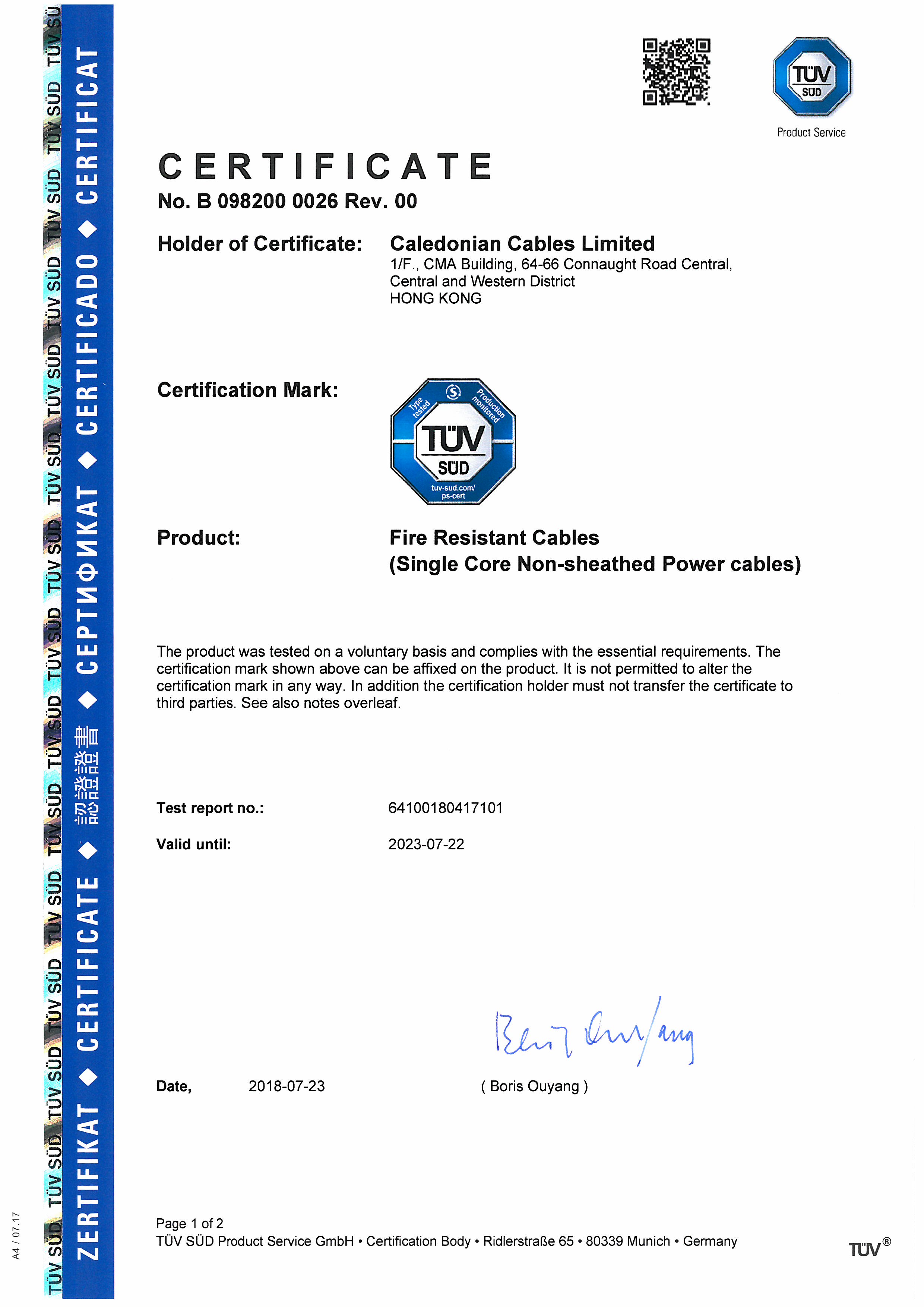 Certificate Number : B 098200 0026