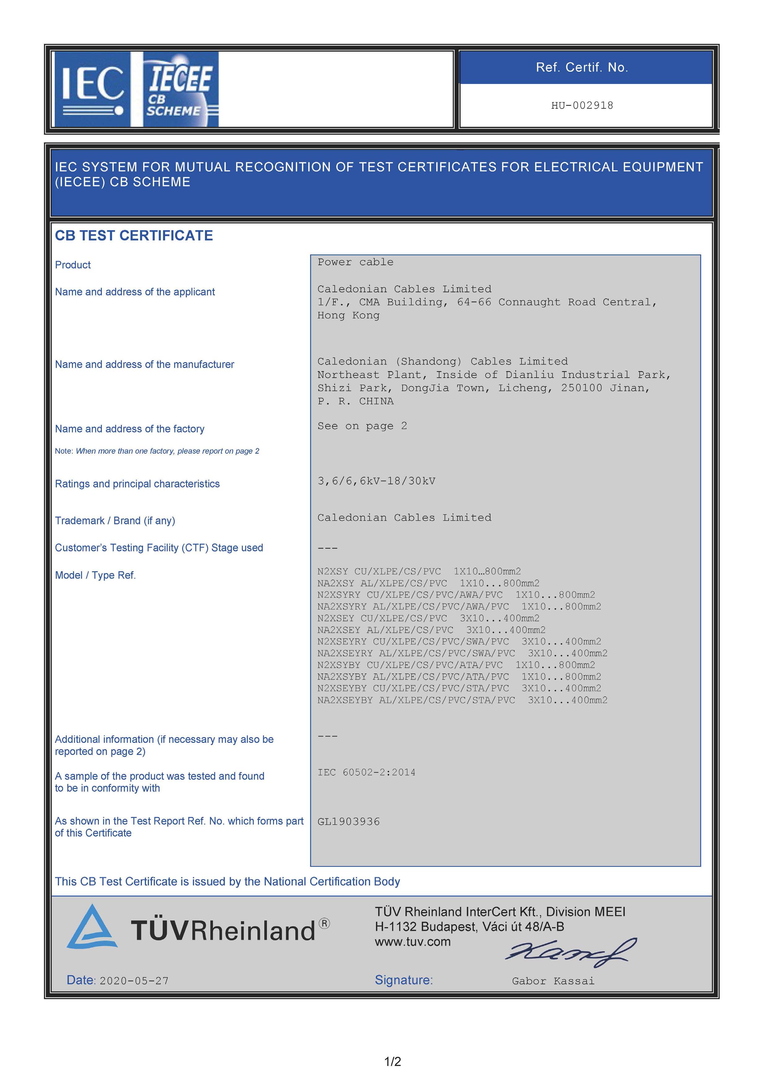 CB Certificate - IEC60502-2 PE