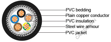 Armour Single Core: AWA (Aluminum WireArmour)           Multi Core: SWA (Steel Wire or Tape Armour)