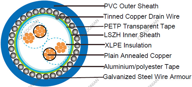 No. of Pairs x2xCross Section Nominal Insulation Thickness Nominal Inner Sheath Thickness Nominal Overall Diameter Over Inner Sheath Nominal Armour Wire Diameter Nominal Outer Sheath Thickness