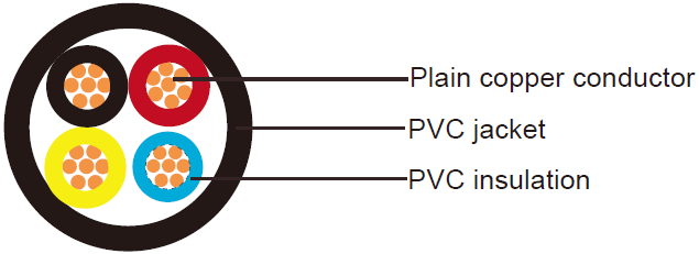 600/1000V,PVC Insulated Cables according to IEC 60502-1 Three core +1(unarmoured)