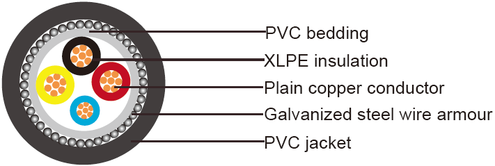 600/1000V,XLPE Insulated Cables according to IEC 60502-1 Three core+1(armoured)