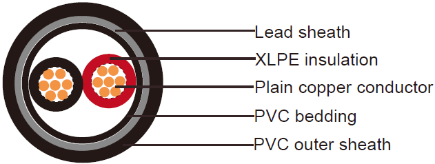600/1000V,XLPE Insulated and Lead Sheathed Cables according to IEC 60502-1 Two core(unarmoured)
