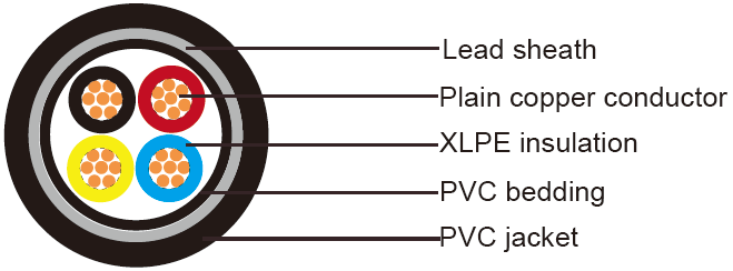 600/1000V,XLPE Insulated and Lead Sheathed Cables according to IEC 60502-1 Four core(unarmoured)