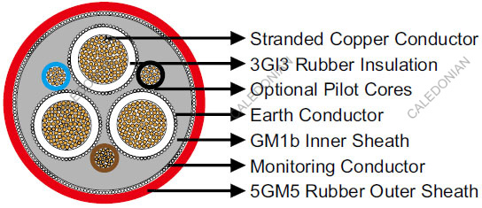 These cables are used for the connection of electrical equipment, in mines and underground excavations with hazardous environments under particularly high mechanical loads, e.g. high-voltage transformers on power lines in underground mining and tunnelling.