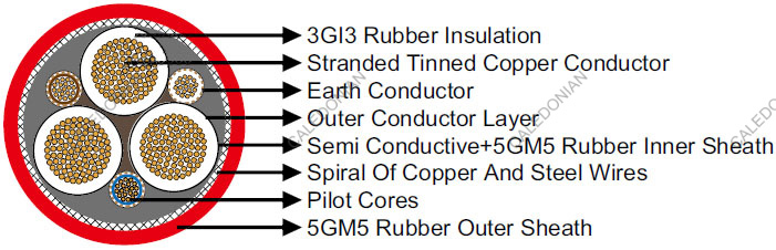 Outer Sheath Rubber type 5GM5, abrasion and tear resistant, oil resistant and flame retardant.