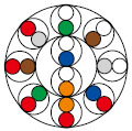 b-core blue, yellow, green, brown, black in continual repetition.