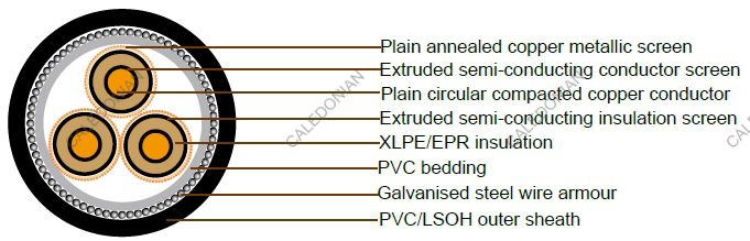 3.8/6.6kV Three Core Individual Screened & PVC/SWA/PVC Sheathed (Cu Conductor)