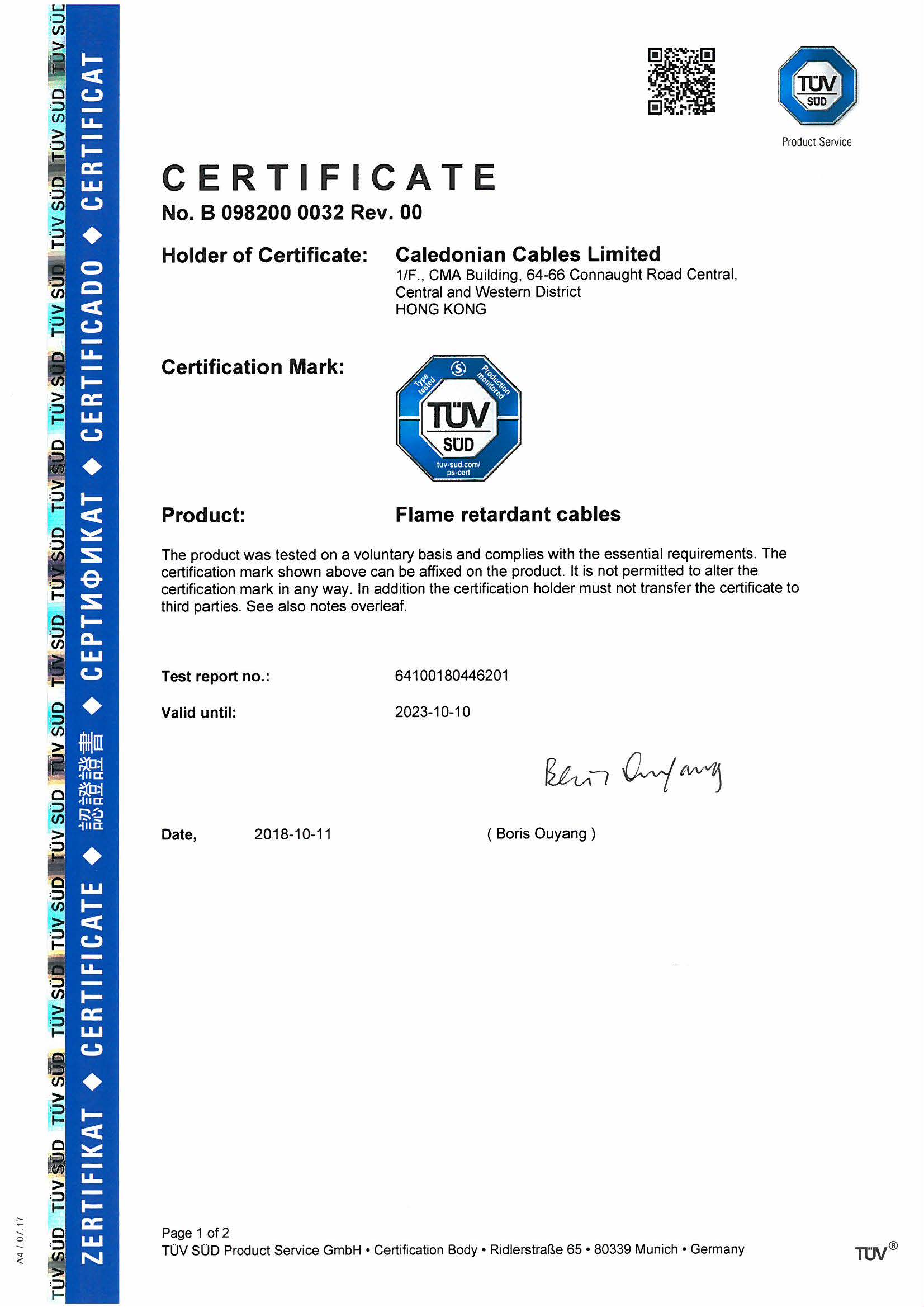 TUV MARK-IEC60502-1-PVC-Screen Certification