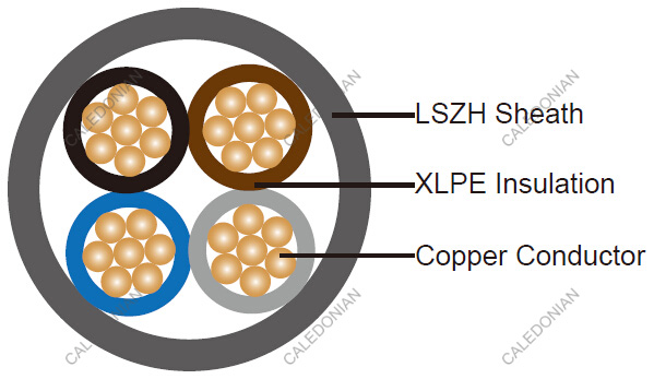 Four-core 600/1000V XLPE Insulation, LSZH Sheath Cables to BS 8573