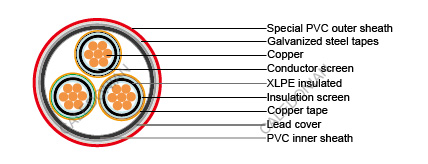 Medium Voltage XLPE Insulated Galvanized Steel Tape Armored Cable with Lead Cover to IEC 60502-2
