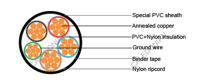Jacket: Special PVC, flame retardant, UL listed sunlight and moisture resistant, meeting the requirements of UL 1277. Color: Black