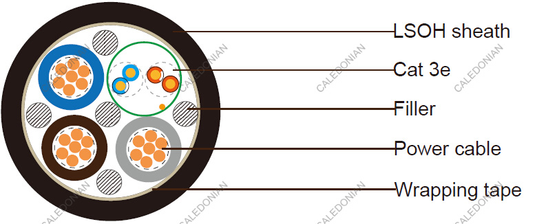 Cat3e+3x16AWG Power Cable LSZH Sheathed Unarmored Composite Cable