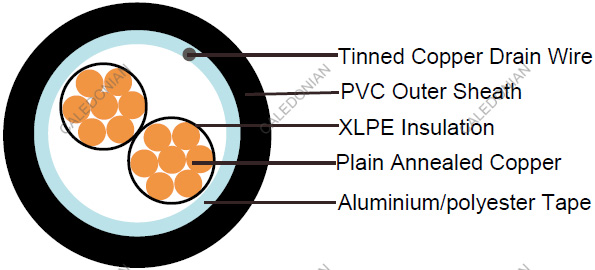 - Overall Screen: Aluminium/polyester tape with tinned copper drain wire, 0.5mm2