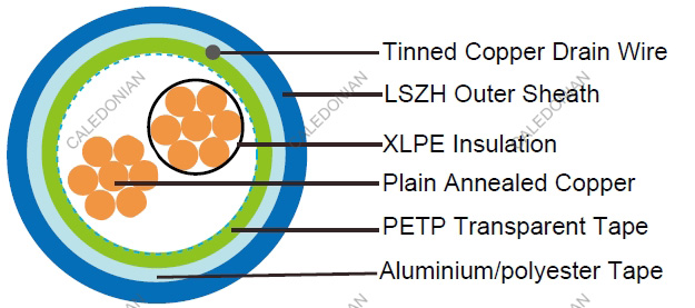 • Overall Screen: Aluminium/polyester tape is applied over the laid up pairs metallic side down in contact with tinned copper drain wire, 0.5mm2