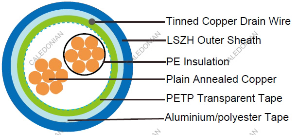 • Overall Screen: Aluminium/polyester tape is applied over the laid up pairs metallic side down in contact with tinned copper drain wire, 0.5mm2