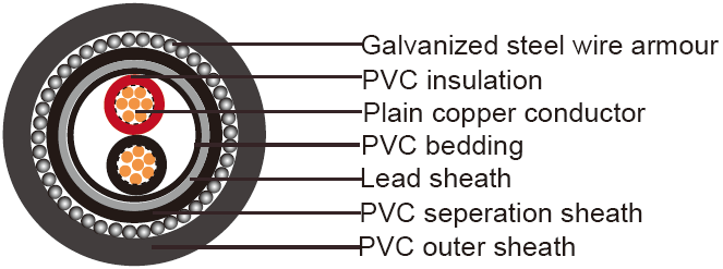 600/1000V,PVC Insulated and Lead Sheathed Cables according to IEC 60502-1 Two core(armoured)