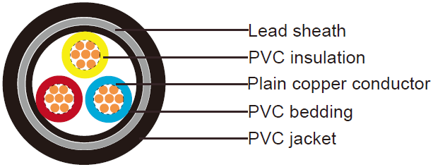 600/1000V,PVC Insulated and Lead Sheathed Cables according to IEC 60502-1 Three core(unarmoured)
