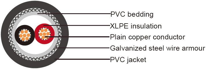 600/1000V,XLPE Insulated Cables according to IEC 60502-1 Two core(armoured)