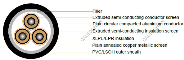 3.8/6.6kV Three Core Individual Screened & PVC Sheathed (Al Conductor)