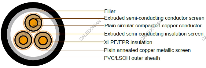 6.35/11kV Three Core Individual Screened & PVC Sheathed (Cu Conductor)