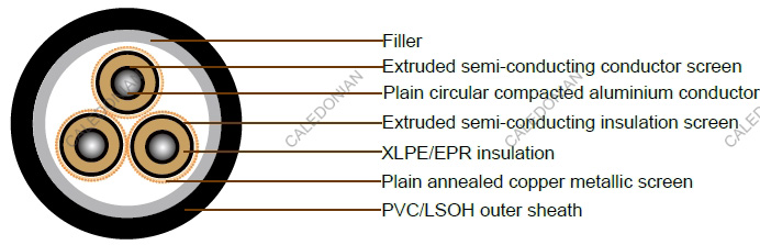 6.35/11kV Three Core Individual Screened & PVC Sheathed (Al Conductor)