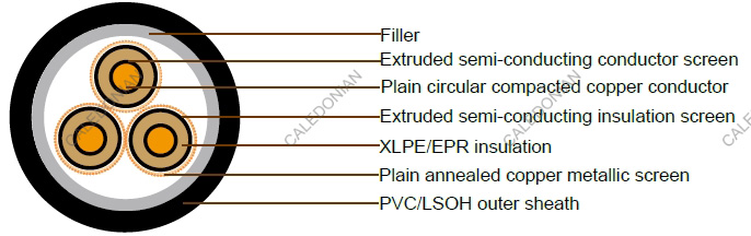 19/33kV Three Core Individual Screened & PVC Sheathed (Cu Conductor)