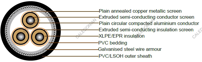 12.7/22kV Three Core Individual Screened & PVC PVC/SWA/PVC Sheathed (Al Conductor)