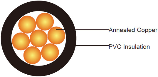 H05V-R: 符合 BS EN 60228 的 2 类绞合铜导体。 |