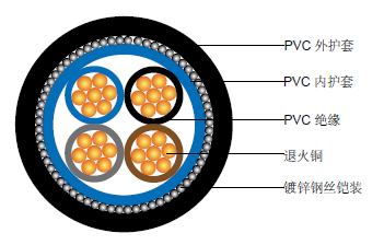 BS 6346 600/1000V PVC 绝缘, PVC 护套 铠装电力电缆 适用于工业地区、建筑物及类似用途的固定装置。