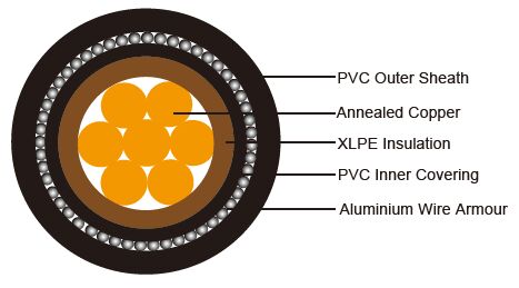 IEC 60502-1 600/1000V XLPE 绝缘, PVC 护套 铠装电力电缆主要应用于发电站、公共交通客运系统、机场、石化工厂、酒店、医院、高层建筑等的配线电缆。此类电缆已通过TUV认证。