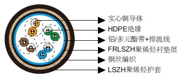 Cat5E SF/UTP: 该电缆有铝/聚酯带&铜丝编织双层总屏蔽及排流线。