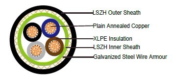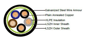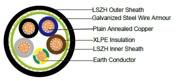 600/1000V XLPE绝缘LSZH护套铠装电力电缆(多芯)