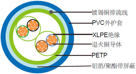 含有镀锡铜导线和0.5mm²屏蔽的铝带或者聚酯带 |