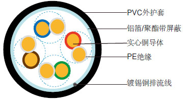 此款线缆为铝箔总屏蔽带排流线。 |