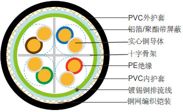 此款线缆为双层铝箔总屏蔽带排流线&铜网编织屏蔽。 |