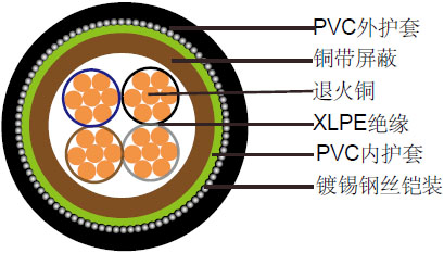 600/1000V XLPE绝缘,PVC护套,屏蔽电力缆 (4芯)