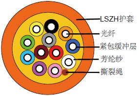 紧包缓冲式LSZH阻燃光缆应用于配线箱之间,以及配线箱和终端设备之间在持续防火环境中的连接。适于多种室内和室外应用,包括建筑物之间的管道布线以及建筑物内部的提升井布线。