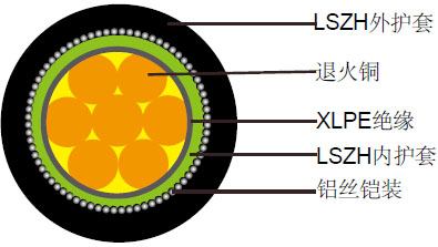 单芯600/1000V XLPE绝缘, LSZH护套, 铠装电力缆主要应用于发电站、公共交通客运系统、机场、石化工厂、酒店、医院、高层建筑等的配线电缆。