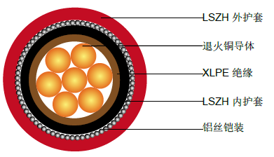 600/1000V IEC 60502-1标准XLPE绝缘,LSZH护套铠装电力电缆(单芯)