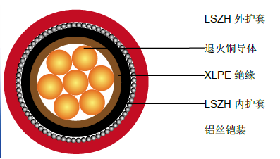 600/1000V BS 6724标准XLPE绝缘LSZH护套铠装防火阻燃电力电缆 (单芯)