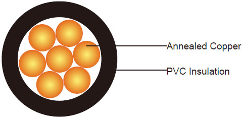 H05V-R: 符合BS EN 60228 Class 2铜绞线导体 |
