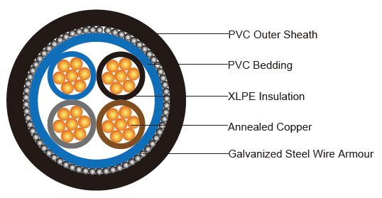 600/1000V BS 5467标准XLPE绝缘PVC护套铠装防火阻燃电力电缆 (2-5芯)