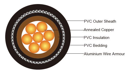 600/1000V BS 6346标准PVC绝缘PVC护套铠装电力电缆(单芯)