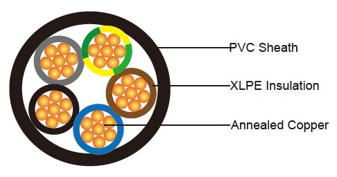 | 填充: | 如有需要,应采用下列方法之一来形成紧凑而合理的圆形电缆。 a)合成填料或粘结带的应用。 b)可选内盖。 c)如果护套有效地填满间隙,则护套。 d)上述任何组合。 内部覆盖可选:可选内覆盖,使用,由一层挤压的合成高分子材料。它应该围绕单个核心和闲置的两个、三个、四个或五个核心,使大会一个实际的圆形。 PVC护套 退火铜 XLPE绝缘 |