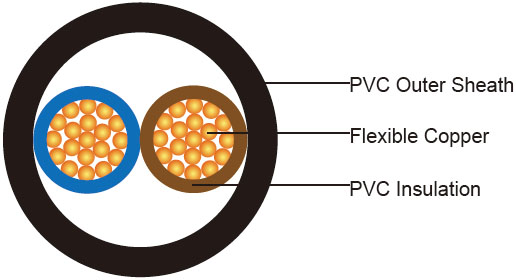 300/500V BS EN 50525标准PVC绝缘 PVC护套防火阻燃电力电缆 (2-5芯)