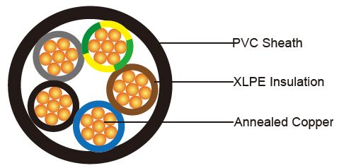 600/1000V IEC 60502标准XLPE绝缘PVC护套非铠装电力电缆 (2-5芯及多芯) 主要应用于发电站、公共交通客运系统、机场、石化工厂、酒店、医院、高层建筑等的配线电缆。