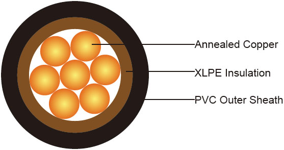 IEC 60502-1 600/1000V XLPE绝缘 PVC护套非铠装防火阻燃电力电缆主要用于工业区、建筑物等固定装置及类似用途,不直接埋于地下或埋于管道内。